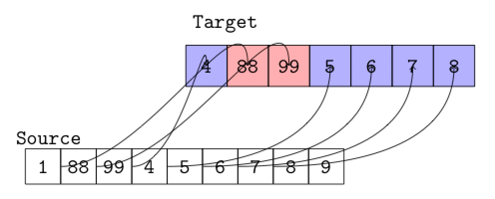 If you notice it is also possible to pick ranges from the source and move to the target like this. This line of code begs for a diagram as higher the rank of a tensor the more complicated it is to visualize what is happening. Remember this is a 1-D or Rank 0 tensor.