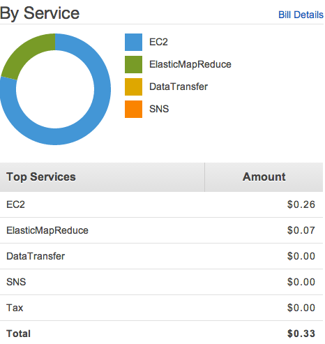 I executed some Pig Jobs on Elastic MapReduce by cloning the same cluster I used earlier(previous blog post). After that cluster setup my billing details were these.